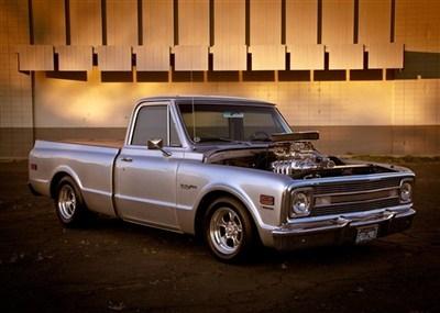 | 72 Chevy C10 471 Hampton blower, 202 edelbbrook heads, 700r trans. Ultra leather interior, handmade air cleaner and shroud caring 2 electric fans. 90 percent finished. Father and son project. |