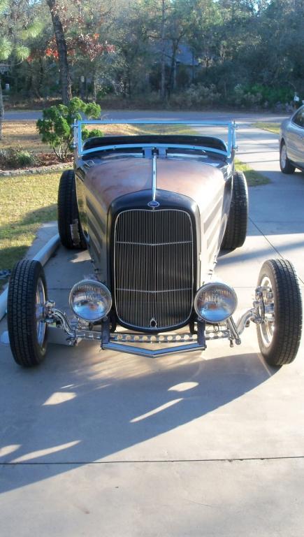 | This is a '32 Ford Roadster that I am working on as my body lets me. Downs body, SoCal front end, 9" rear end and a 350/700R4 transmission. |