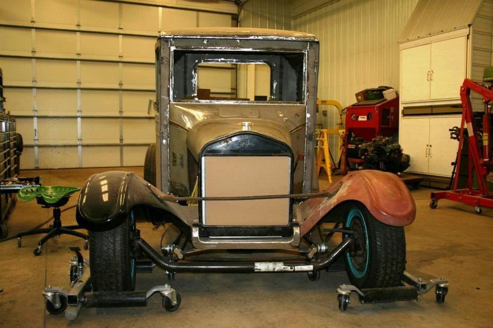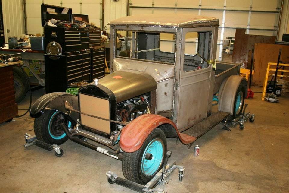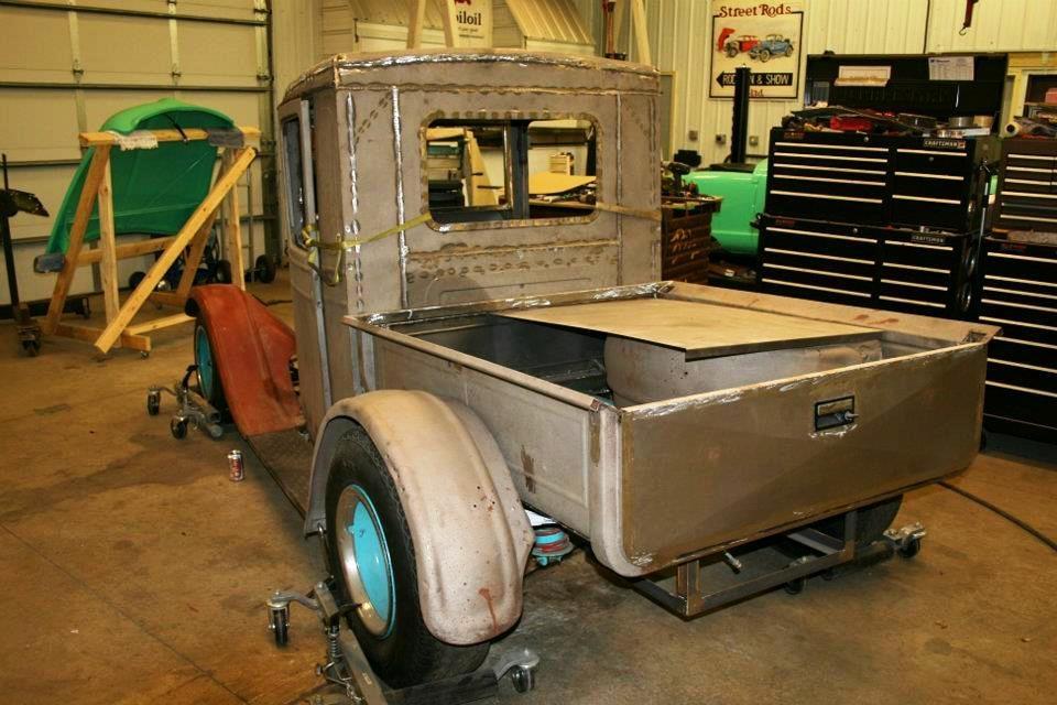 | Model T pick-up shop truck project. Channeled 9", cowl cut out and raised 9", box widened 7" 231 Buick V6 & auto. |