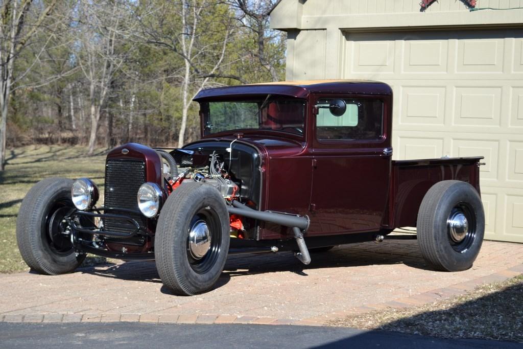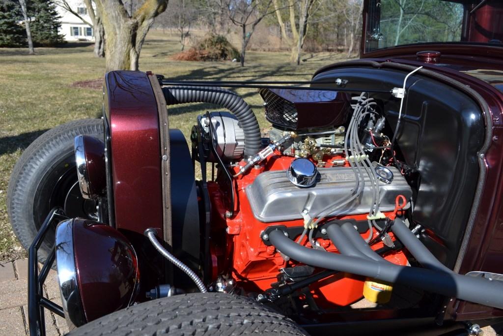 | 5 year project started as a 1 ton flat bed. I built the chassis using model A dimensions with a 8" z in the rear and a 4" sweep up front. Complete restoration of the cab including a 3" chop. The 283 is pretty much stock with a fresh cam and cleaned up heads. A th350 sends the power to a chevy 10 bolt rear axle with a Auburn locker. Fun truck to drive. |