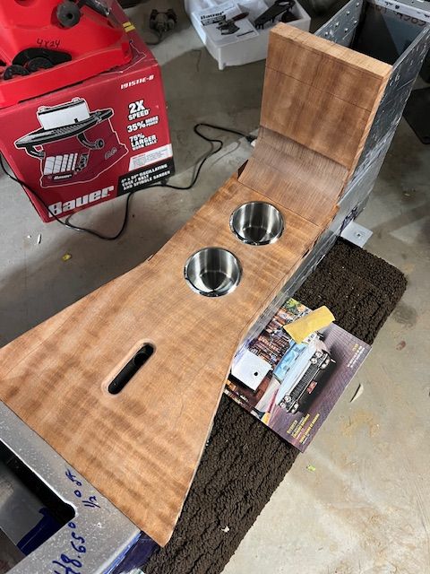 also got the cup holders holes cut. and put 1/4 corner round edge on the shifter slot.