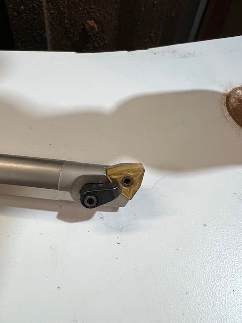 I'll get a pic of it tomorrow, it's an 8" bar with carbide tip, 3/4 in dia. I took 3/16"to 1/4" at a time till the last pass which was only about .020- .035 of an inch. No clean up needed on the wood it's smooth as a baby's butt. This was done on a Bridgeport Milling machine, tool deflection is zero when cutting this wood even with the 8" bar. Each revolution of the bar would mean .006 of an inch downward travel causing a smooth finish. This wood is one of the hardest at a scale of 1400 compared to say pine of about 400 on the wood hardness chart. If I was using Pine, there would have issues trying to hold it tight without damage by either wood deflection or vise crushing it trying to hold it. The vacuum did its clean up all around the Mill if that's the cleanup you mean, there was plenty of that!Last edited by Navy7797; 01-12-2025 at 06:35 PM.
