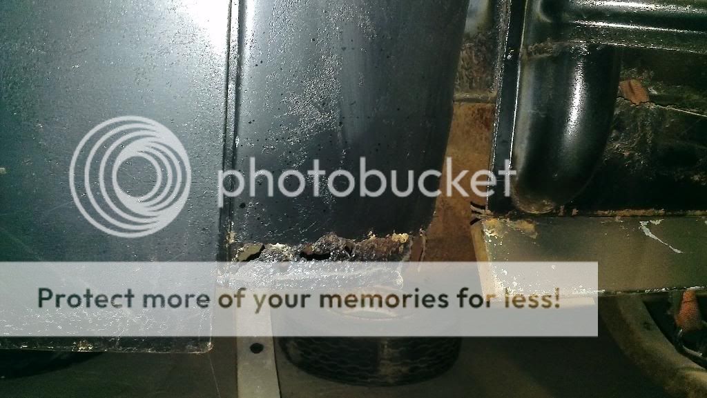 That rust on the right cowl near the hinge is unusual, could be from sitting with piled debris (leaves or similar), but would make me wonder about what might have impacted the frame. Anyway, the normal worst spot on the frame is where the center X member intersects with the side rail (more so in the rear), forms a pocket that held debris then moisture kicked up from the wheels. Then the channel goes back within the side rail forming a doubler, again, an area to hold moisture/junk.Your Uncle Bob, Senior Geezer Curmudgeon