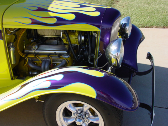 A shot of the flames on my '32 Ford. The car is 1975 Corvette Yellow. The flames are 1998 Firebird purple fading into Viper Red outlined in bright blue.· Date: · Views: 4,118