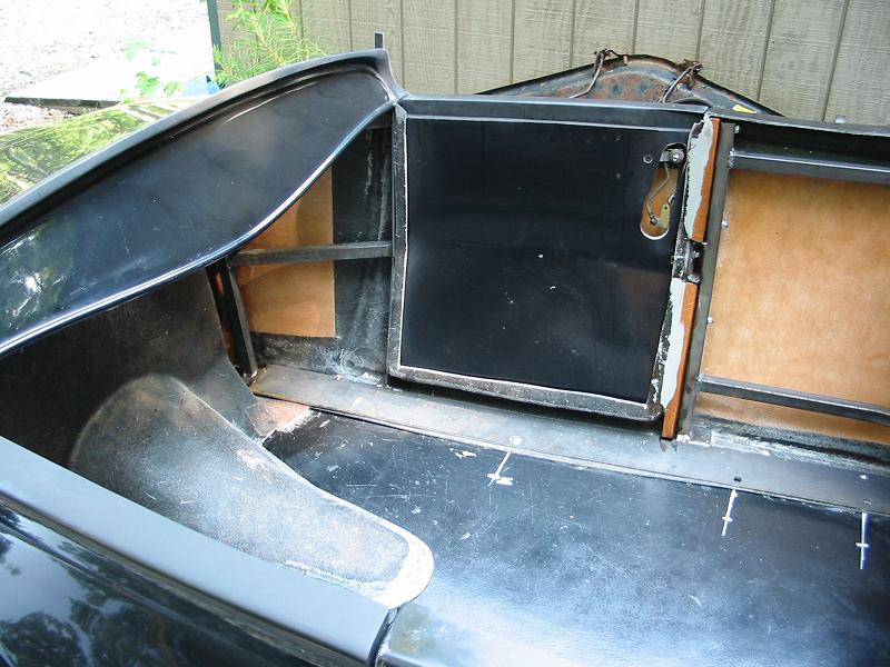 I will just show one picture of the extensive steel framework inside the Bebops body made from 1" square tubing with two long steel plates along the bottom of the body to bolt to the frame. The body is quite rigid and the doors close with a reliable "thunk". This is work form the Bebops factory, not my work. The dash is a '32 style and is interesting in that there was a very slightly noticeable outline of the original oval instrument cluster. That influenced the choice for a TPI instrument cluster in an oval mount and the hole turned out to be very close to the edges of the '32 ghost outline.· Date: · Views: 5,393