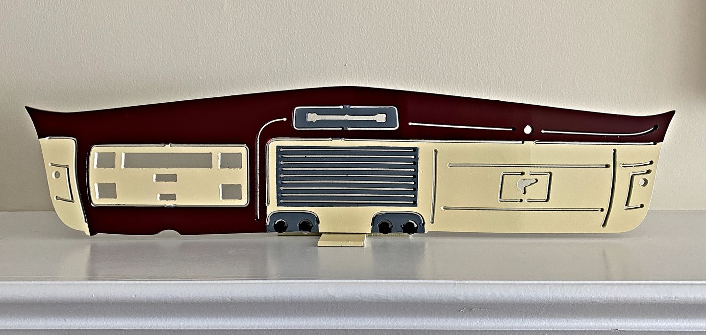 Just cut this mini version of a 1940 Ford dash with a wireless Blue Tooth speaker fitted. When I put the Beach Boys on, it's like being back in my '40. Well, almost!